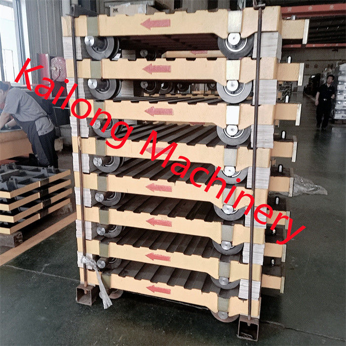 Los coches de la plataforma con las cajas de moldeo se fabrican con la soldadura gris del hierro GG25 de un grado más alto, o al acero, y tienen rigidez más alta y pueden llevar el impacto de alta presión. Además, diseñamos y fabricamos diverso tamaño del dibujo del cliente y de la especificación técnica.